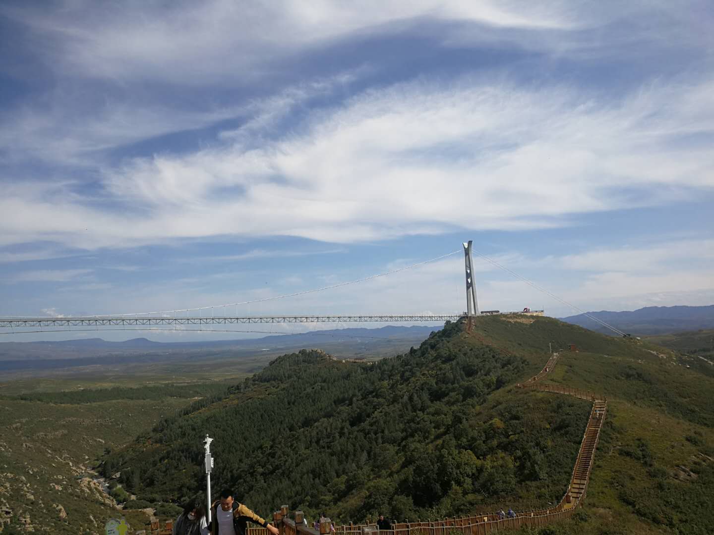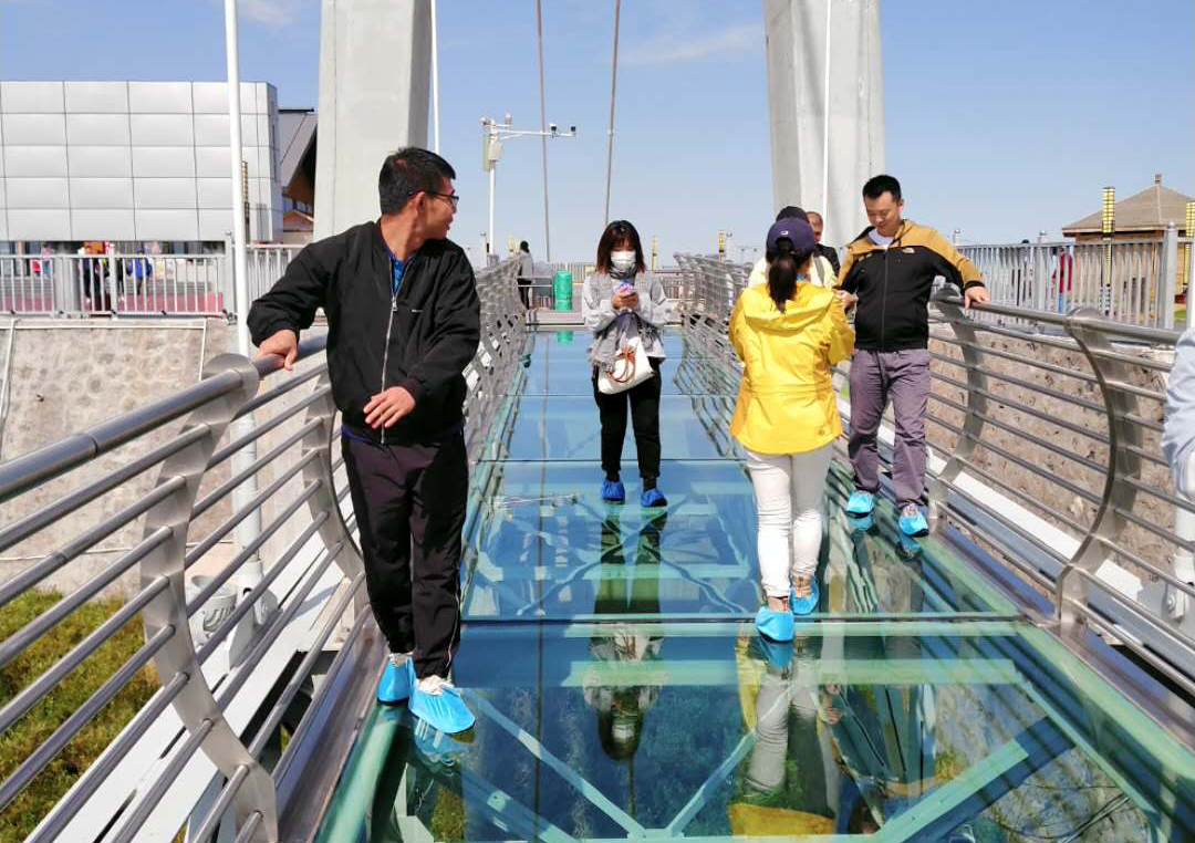 14日下午游覽車載著一行人行駛在山間的小路上,清風徐徐,好不愜意,接著迎來了全長639米的玻璃棧道挑戰,驚心動魄,姿態百出。